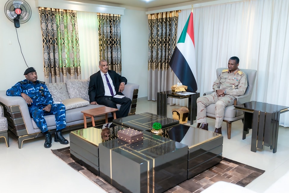 نائب رئيس مجلس السيادة، الفريق أول محمد حمدان دقلو يلتقي ممثل النائب العام ومدير عام الشرطة المكلف 4 مارس 2023 (المصدر: إعلام الدعم السريع)