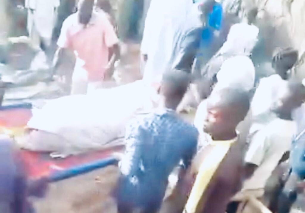 احدي ضحايا القصق الجوي محمولا على عنقريب من حطام المنزل المدمر بمدينة كتم يوم الاربعاء 19 يونيو 2024 - راديو دبنقا