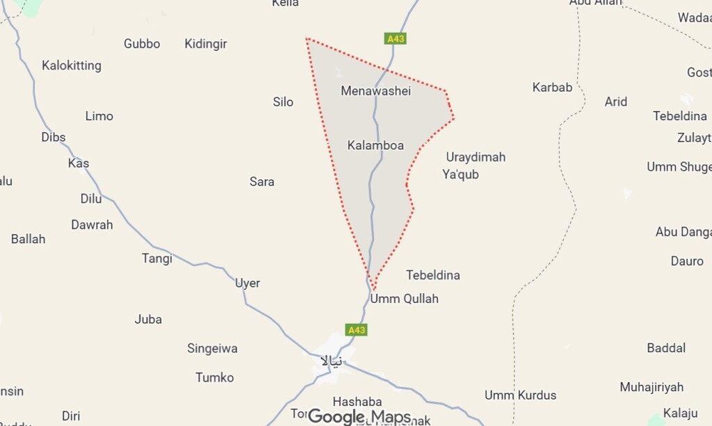 نيالا ومحلية مرشينج بجنوب دارفور-خرائط قوقل