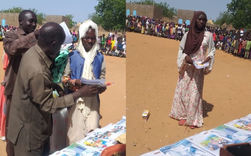 تلاميذ من معسكر جبل للنازحين السودانين بشرق تشاد في حفل نهاية العام الدراسي 28 يونيو 2022 (المصدر: راديو دبنقا )