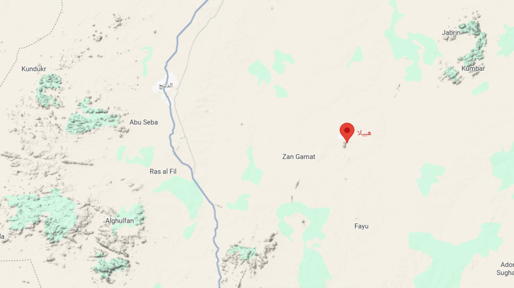 خريطة توضح موقع هبيلا بجنوب كردفان- خرائط قوقل