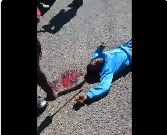 لقطة شاشة في مقطع فيديو تصفية شاب بعد تهشيم رأسه- وسائل التواصل