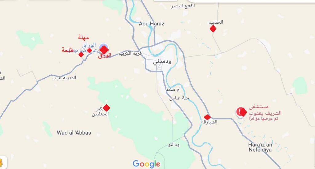 وسيطر الجيش أمس على الحاج عبد الله وعدد من القرى المجاورة باتجاه جنوب الجزيرة، كما تمكن من السيطرة على قرى مهلة وطلحة والكمر الجعليين وقرية الوراق التي تبعد 20 كيلومترا شرقي ود مدني في محور المناقل.