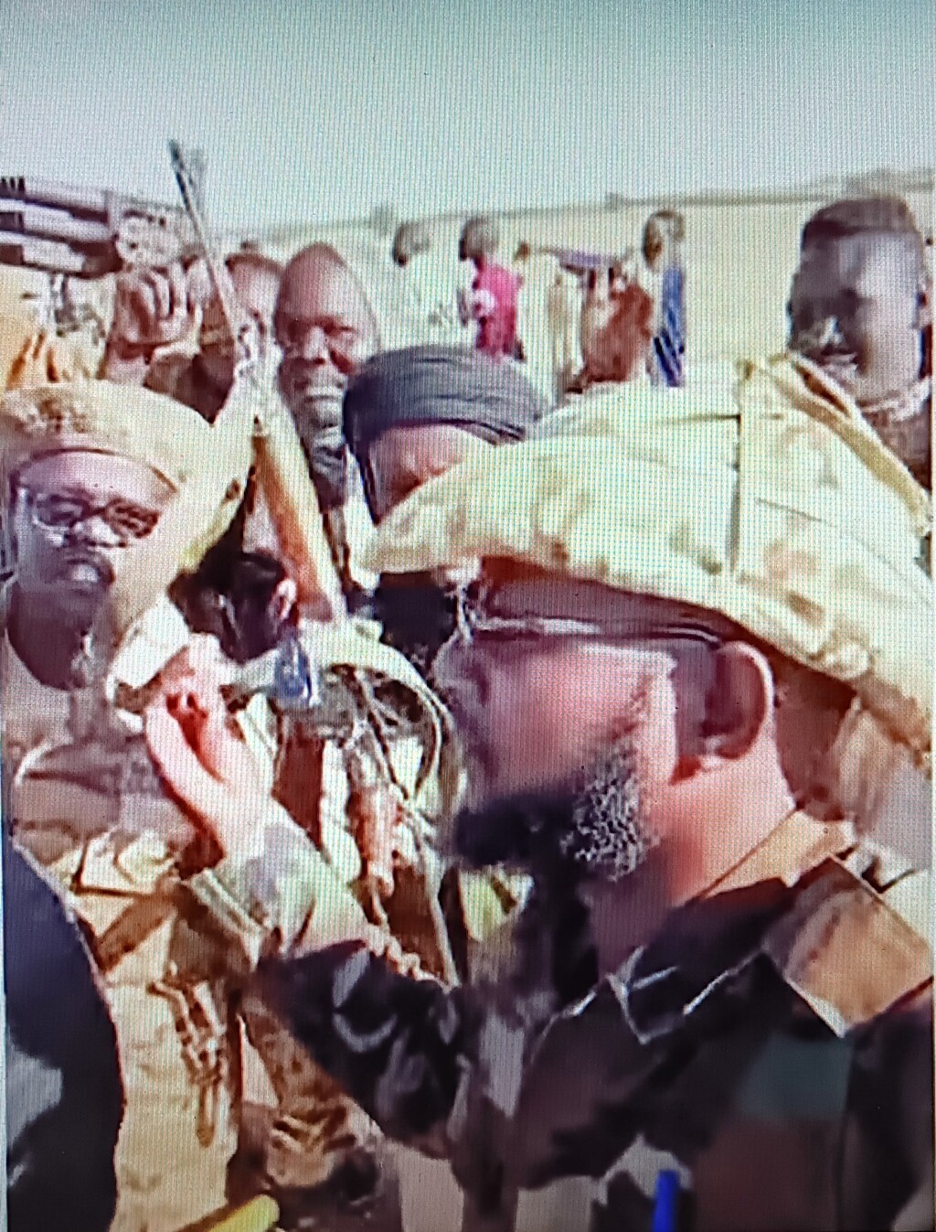 صورة من فيديو منشور على صفحة الدعم السريع بالفيسبوك يظهر جنود من الدعم السريع على تخوم مدينة القطينة بولاية النيل الأبيض يوم الخميس 21 ديسمبر 2023
