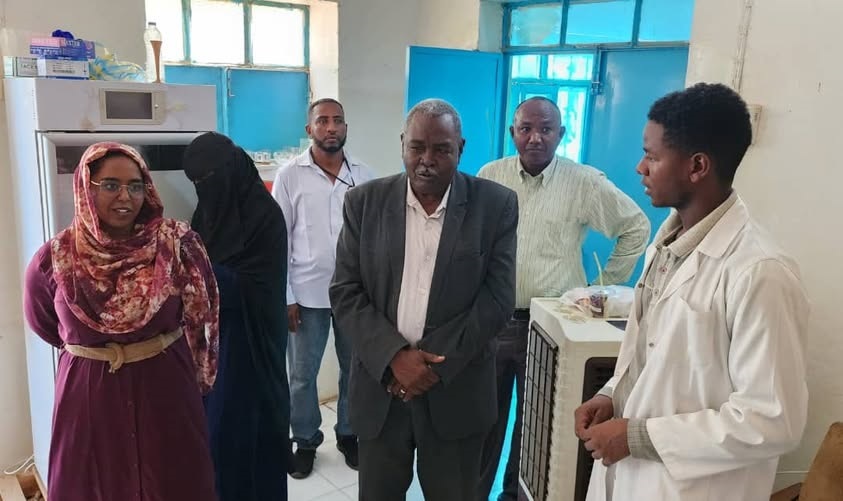 البروفيسور عبدالله محمد عبدالله مدير جامعة كردفان مع بعض طلاب الجامعة في مخيم علاجي صحي بمدينة الابيض اكتوبر 2023 - الصورة وكالة السودان للأنباء