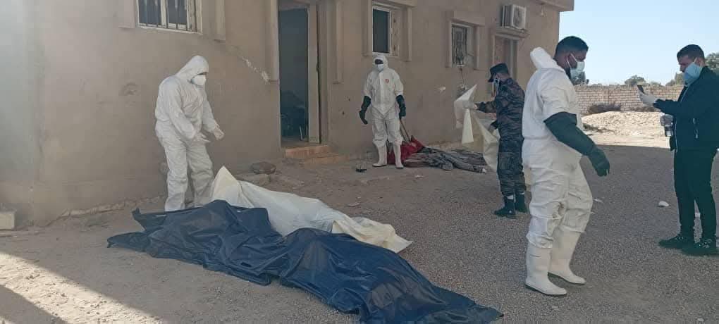 بحسب ما ورد من قسم البحث الجنائي في إجدابيا، تقدم صاحب المنزل ببلاغ حول انبعاث الروائح الكريهة من المنزل. بناءً على ذلك، تم فتح محضر بالواقعة وعرضه على النيابة العامة، التي أذنت بفتح المنزل بحضور الجهات المختصة. عند الدخول إلى المنزل، تم العثور على الجثث في إحدى الغرف المغلقة.