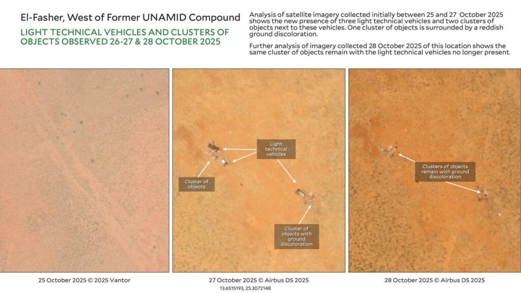 من جانبها، اتهمت شبكة أطباء السودان قوات الدعم السريع بـ قتل 1,500 شخص أثناء خروجهم من الفاشر، وقالت في بيانٍ عن “المجازر” إن 14 ألف مدني قُتلوا في الفاشر خلال أكثر من عام ونصف، في ظل الحصار المطبق والتجويع الممنهج والاستهداف المتعمد للمرافق المدنية والأسواق ومعسكرات النزوح.