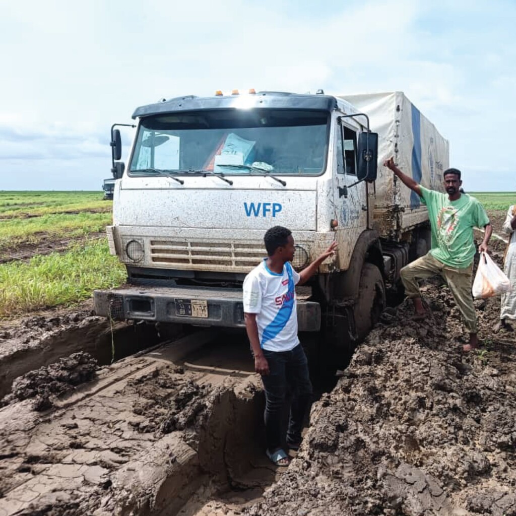 شاحنة تتبع لبرنامج الغذاء العالمي علقت خلال فصل الخريف-برنامج الغذاء العالمي