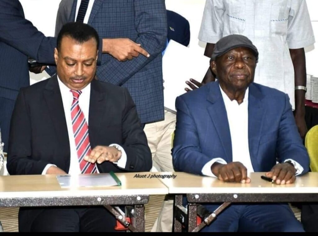 عبد العزيز الحلو وجعفر الميرغني خلال توقيع الإعلان السياسي يوم ٢٤فبراير٢٠٢٣ -أديس أبابا.. مصدر الصورة:موقع الحركة الشعبية
