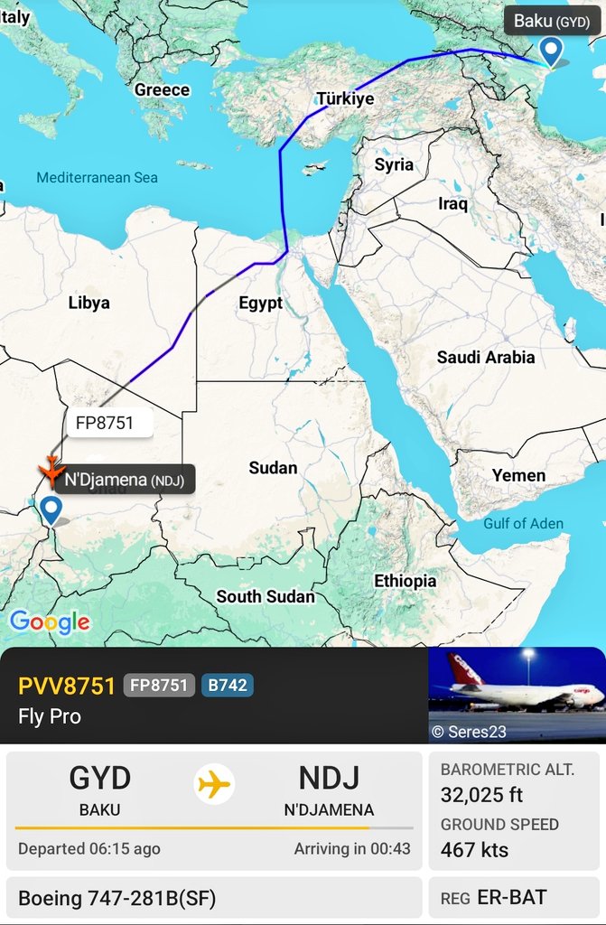 وتتصاعد وتيرة الإمداد بالسلاح، حيث رصد الخبير الاستراتيجي تيد ريتش خلال يناير الجاري طائرة شحن من طراز بوينغ 747-409F تابعة لشركة «بيكوتوكس إير» المرتبطة بحكومة الإمارات العربية المتحدة، أقلعت من مطار العين، ويرجح أنها اتجهت إلى مطار نجامينا في تشاد. كما وصلت طائرة بوينغ 747-281F التابعة لشركة «فلاي برو إيرلاينز» من باكو في أذربيجان إلى مطار نجامينا، وهي رحلة الشحن الجوي المباشرة الرابعة عشرة من باكو إلى نجامينا خلال الأشهر الأربعة الماضية.
