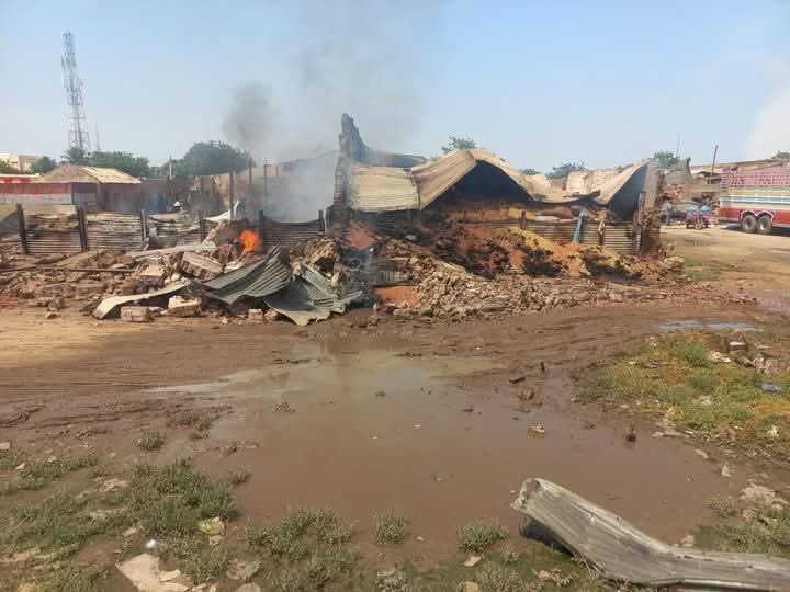 مخزن في سوق المحاصيل بالأبيض جرى احتراق بسبب الهجمات بطائرات مسيرة-4 اكتوبر 2025-وسائل التواصل