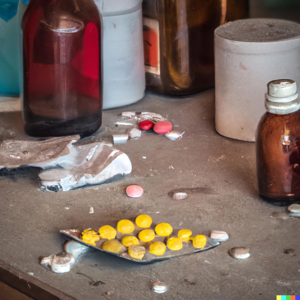 رسم بالذكاء الاصطناعي تمثل أدوية في تربيزة