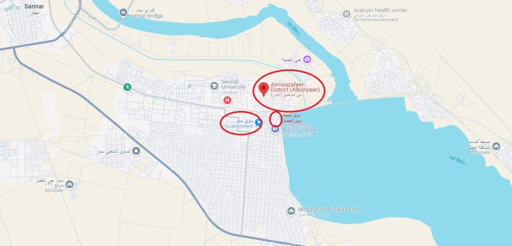 المناطق الرئيسية التي تعرضت للقصف في سنار