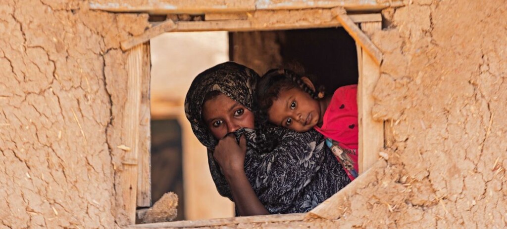© UNICEF/Ahmed Mohamdeen Elfatih طفل وأمه ينظران من خلال نافذة في مجتمع السبعات بولاية كسلا.