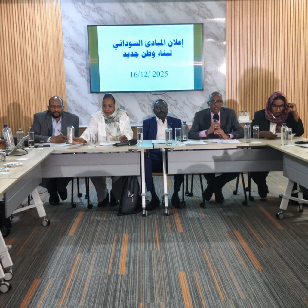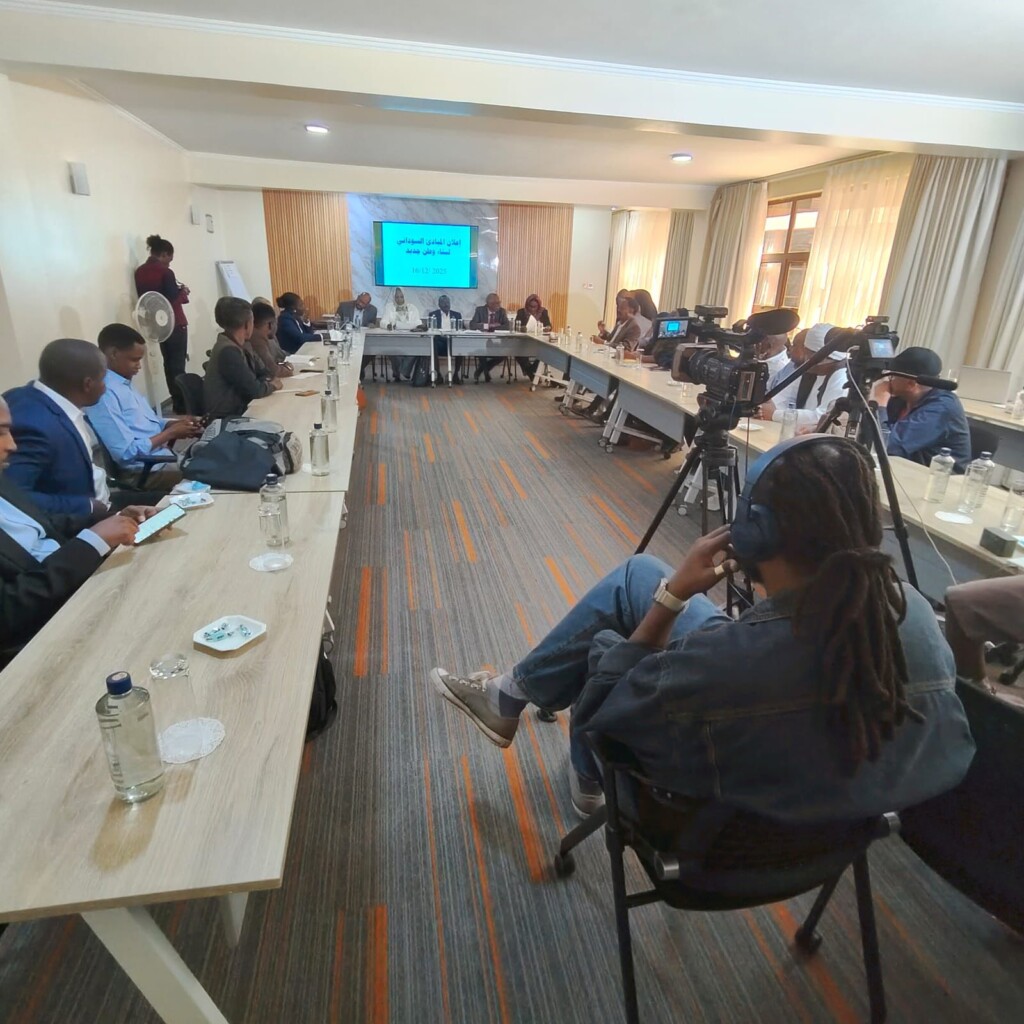جانب من المؤتمر الصحفي للقوي المدنية والسياسية الموقعة على اعلان المباديء بنيروبي اليوم الثلاثاء 16 ديسمبر 2025 : مصدر الصورة : راديو دبنقا
