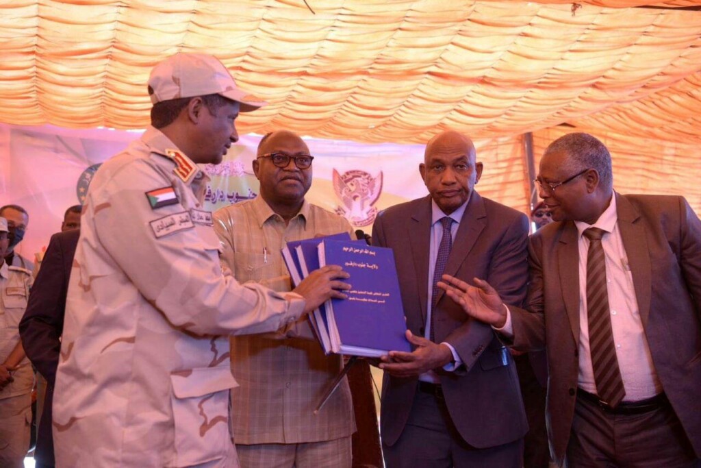 حميدتي يتسلم نتائج لجنة التحقيق حول احداث بليل جنوب دارفور16فبراير 2023م (المصدر:وكالة السودان للانباء)