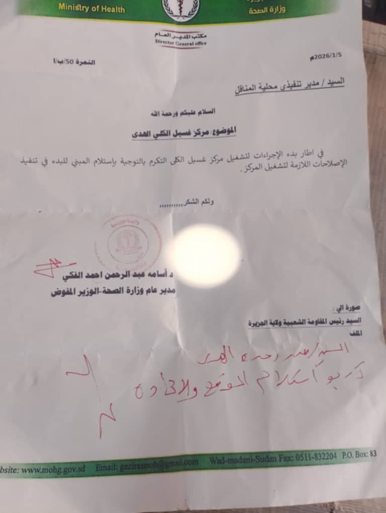 وتعود تفاصيل الأزمة الحالية إلى تصديق وزارة الصحة بولاية الجزيرة بماكينات غسيل كلى للمركز، غير أن الوزارة اشترطت لتسليم هذه الأجهزة وضمان سلامتها وجاهزية الموقع ضرورة إخلاء المبنى من المظاهر العسكرية، وفي المقابل أبدت قيادات المقاومة الشعبية الموجودة داخل المركز رفضها للمغادرة، مما أدى إلى تجميد عملية التسليم وتعليق العمل في هذا المرفق الحيوي الذي كان من المفترض أن ينهي معاناة مرضى الفشل الكلوي في المنطقة.