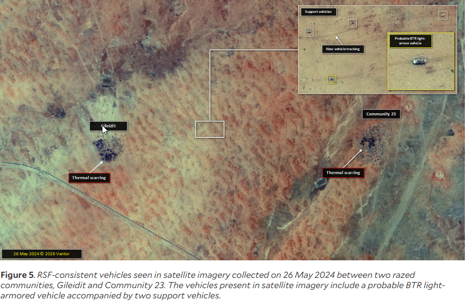 وتشير الأدلة المستمدة من صور الأقمار الصناعية إلى أن هذه القرى تعرضت لحرائق واسعة النطاق، شملت تدمير المباني واحتراق البنية التحتية السكنية. ويُقيِّم الباحثون بدرجة ثقة عالية أن الهجمات نُفذت بواسطة قوات الدعم السريع.