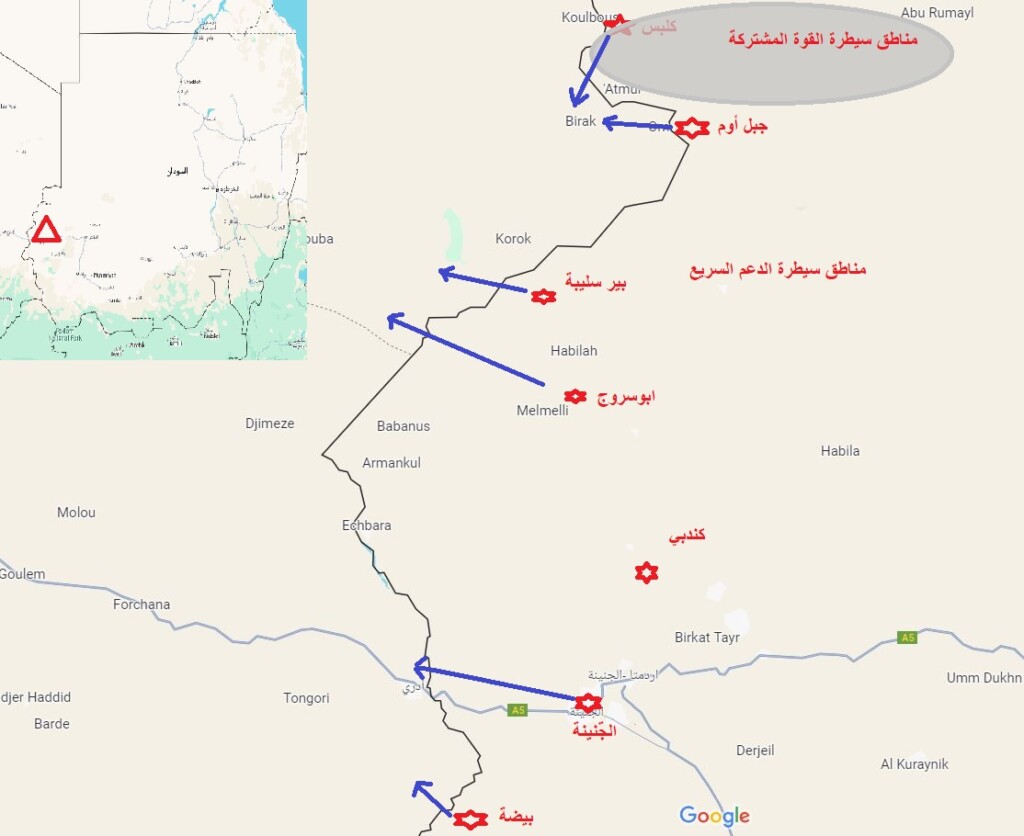 وشهدت محليتا كلبس وجبل مون معارك عنيفة بين القوة المشتركة للحركات المسلحة والدعم السريع في نهاية سبتمبر، وكان أعنفها ما جرى في جبل اوم بمحلية جبل مون في نهاية سبتمبر الماضي.