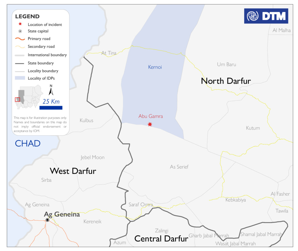 كشفت منظمة الهجرة الدولية عن نزوح 1500 شخص من منطقة أبو قمرة في محلية كرنوي بشمال دارفور، بسبب الاشتباكات التي جرت الأسبوع الماضي.