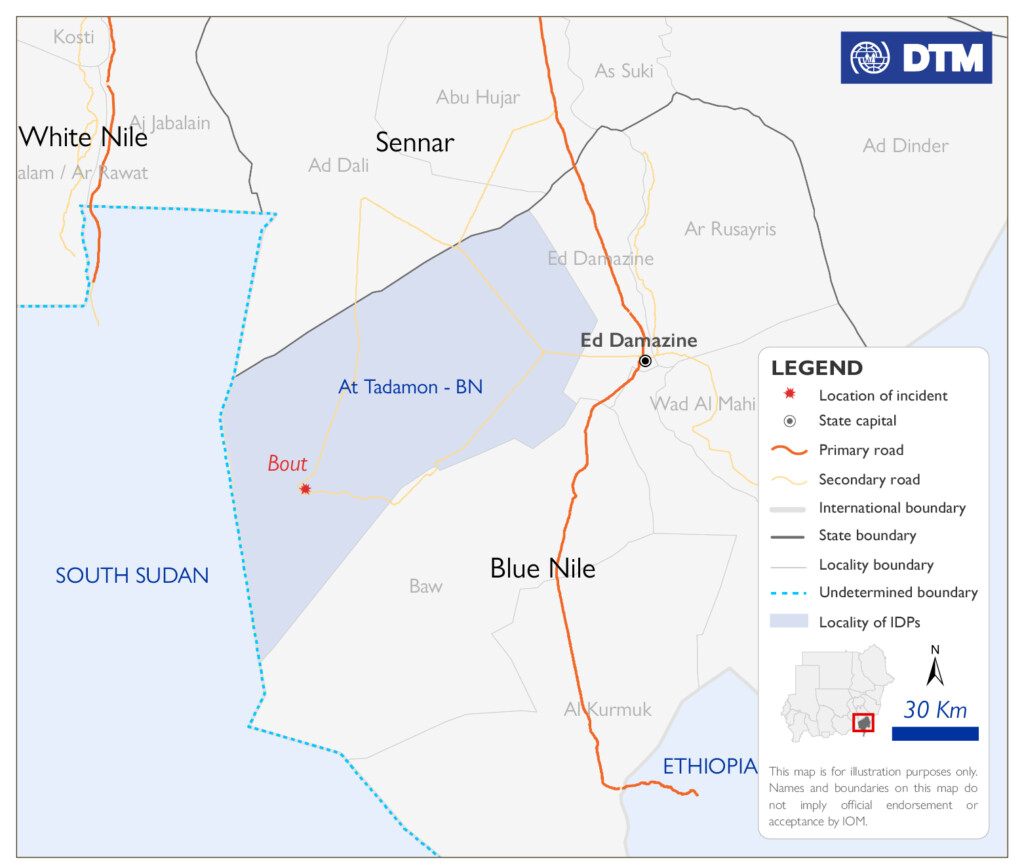 وفي إقليم النيل الأزرق، كشفت المنظمة عن نزوح 600 شخص من منطقة بوط في محافظة التضامن بولاية النيل الأزرق الأسبوع الماضي.