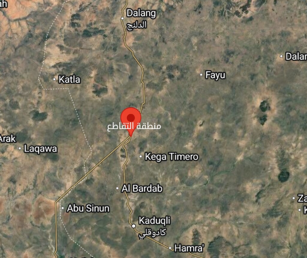 خريطة تظهر موقع منطقة التقاطع في جنوب كردفان