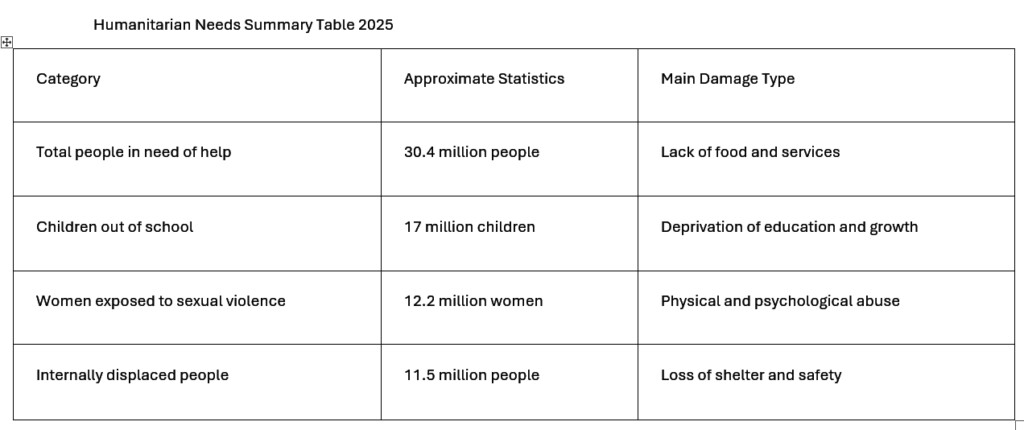 Women and girls have been subjected to serious violations in the form of sexual violence, and the number of women exposed to gender-based violence has risen to 12.2 million (an increase of 80% from 2024).