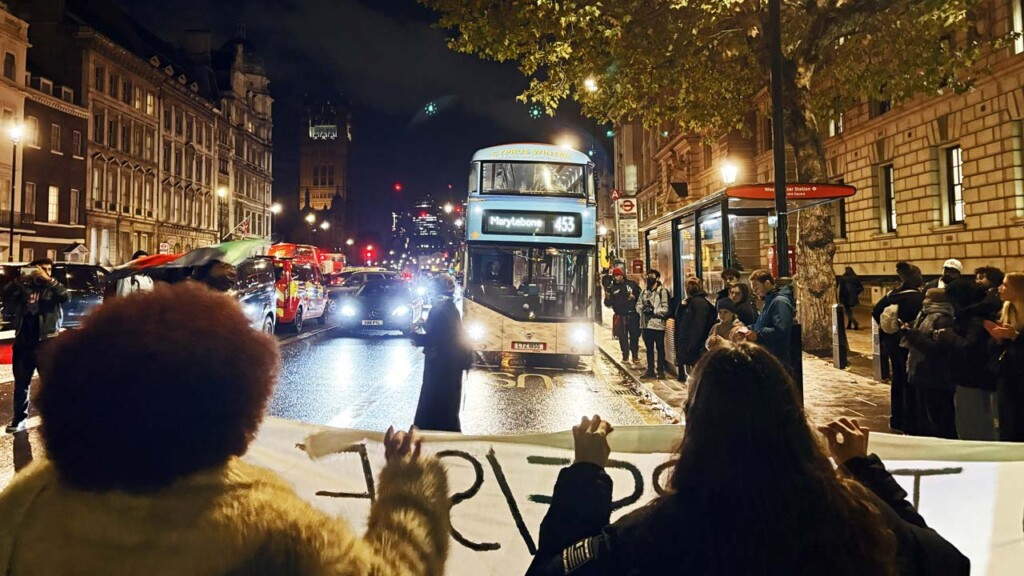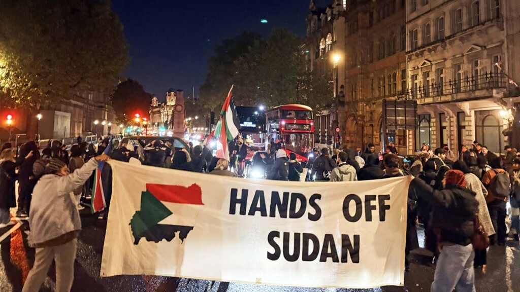 Traffic outside the official residence of the British Prime Minister, Sir Keir Starmer, at 10 Downing Street in central London ground to a stop on Wednesday evening as pro-Sudan protesters shut down Whitehall, home to several UK Ministries including the Foreign Office and the Ministry of Defence. Demonstrators later confronted MPs at a nearby restaurant, in a pointed indictment of what they call ‘Britain’s material complicity in atrocities unfolding in Sudan’s besieged city of El Fasher’.